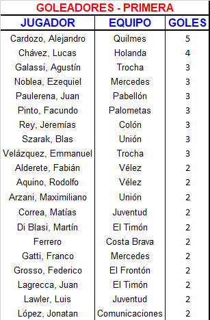 Jonathan Martínez para Colón. Sebastián Avalos y Darío Broggi para Atlético Marcos Paz.