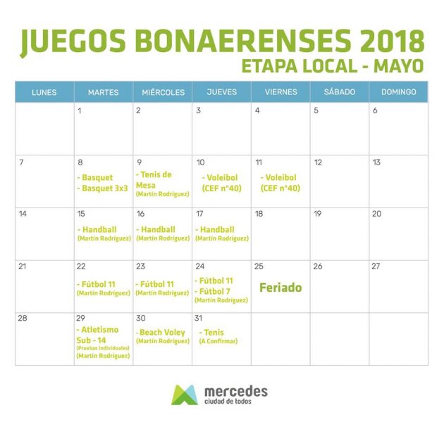 Se reanuda la ilusión de ser campeón provincial en los Juegos Bonaerenses y la travesía de cientos de mercedinos comenzará en la jornada de hoy y se extenderá, en la etapa local, durante todo el mes. Para mayores informes y consultas de fixture dirigirse a la Dirección de Deportes en calle 9 esquina 6 o al teléfono 434369.