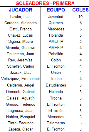 Peña Diego Armando 1: Gabriel Cejas, Gonzalo Duberti, Juan Acenso, Maximiliano Lencina, Jonathan Pajón, Federico Denis, Sergio Chaparro, Ramón Clavero, Alberto Rodríguez, Lucas Atampi y Diego Duberti. DT: Maximiliano Cané. Suplentes: Enzo Babore, Federico del Bianco y Nicolás Geracitano.