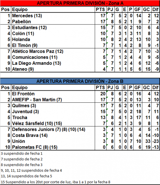 Una nueva jornada en forma completa se pudo llevar adelante en el torneo de Primera División de Primera y Reserva de la Liga Mercedina, con la salvedad que, por corte de luz, el encuentro de la máxima categoría entre Vélez y Palometas no pudo llegar a su fin, cuando estaba 1 a 1. La entidad ya programó fútbol para los próximos días, con encuentros adeudados y la novena fecha, que se jugará entre viernes y lunes, con la salvedad que, el domingo, por ser el día del padre, no habrá actividad.
