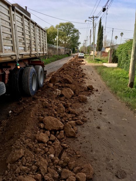 Se pudo ver en Los Robles la colocación de piedras, una de las medidas que sin duda en muchos lugares esperan y que con “gran esfuerzo tratamos de implementar”, narraron desde la comuna, sin olvidar que “el precio se ha disparado, subieron cuatro o cinco veces su valor en los últimos meses”, mencionaron, pasando a pagar cada día más, destacando que incluso en ocasiones los proveedores no suministran, justamente por el tema de la fluctuación del precio dada la situación económica del país.