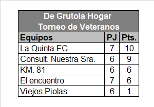 Este conjunto protagonizó la gran goleada de la fecha sobre los muchachos de Viejos Piolas, quienes siguen sin levantar cabeza y no logran salir del fondo de la tabla. El aporte goleador para los vencedores llegó de la mano de Juan Galarza, Gonzalo Delía, que se sumaron a los tripletes de Miguel Désima y Diego Borjas.