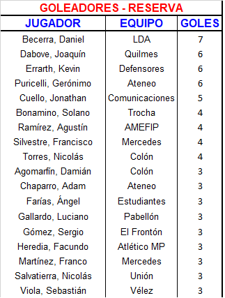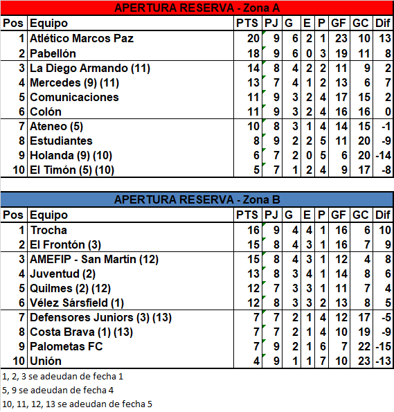 No hubo grandes sorpresas el certamen de Reserva de la Liga Mercedina en cuanto a resultados, ya que todos los equipos de la parte alta de cada zona se enfrentaron con los de la parte baja y los resultados fueron los lógicos. Sólo se midieron Trocha y AMEFIP Barrio San Martín, que pelean en la Zona B, y terminaron empatados para que, con la victoria de El Frontón, la diferencia de puntos sea la mínima entre los tres.