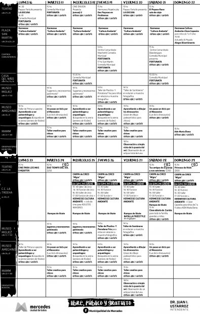 Lucía Capaccio, Directora de Cultura, manifestó “continuando con uno de pilares de esta gestión, como son los derechos del niño, presentamos junto al Intendente Ustarroz, un programa de dos semanas lleno de actividades gratuitas para todos los mercedinos”.
