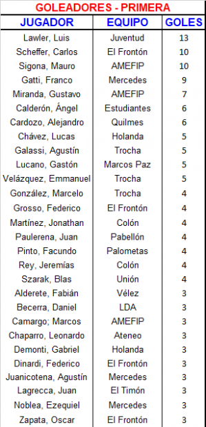 | Atlético MP | 3 | Gastón Lucano (2) y Federico Amorena |