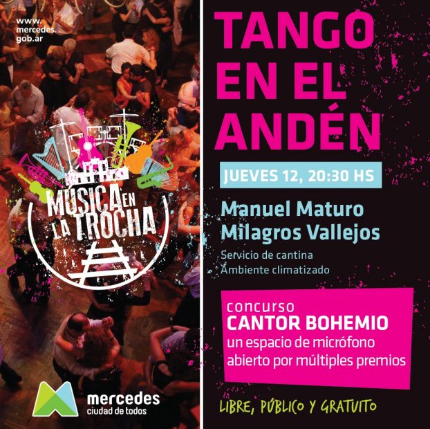 Con la organización de la Dirección de Cultura, se acerca una nueva edición de Tango en el Andén. Se presentarán Milagros Vallejos y Manuel Maturo. Además, inaugurarán un nuevo concurso de canto en busca de las nuevas voces del 2 x 4.