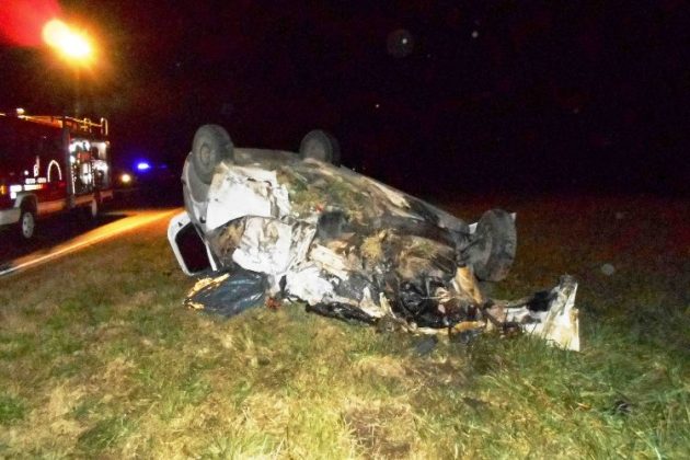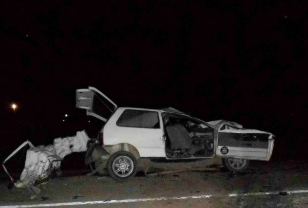 Producto de la violenta colisión entre ambos vehículos, el Fiat Uno, quedó sobre la banquina por donde circulaba, en tanto el Volkswagen Gol, finalizó volcado varios metros después sobre la zona de préstamo de su mano de circulación.