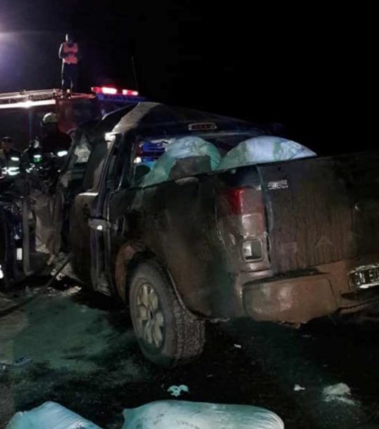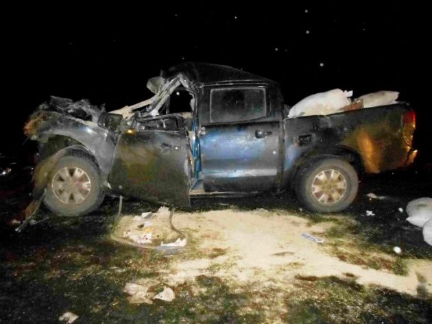 Minutos más tarde, alrededor de las 18:50, mientras el tránsito por este sector circulaba a baja velocidad a raíz de las tareas de auxilio del acoplado volcado, una pick up Ford Ranger, color azul oscuro, dominio LQN601, conducida por el chivilcoyano Hugo Oscar Isatis, de 78 años que circulaba en sentido Chivilcoy-Suipacha, al llegar al km 135,200, embistió violentamente la parte trasera de un acoplado patente UDV063, que remolcaba un camión Mercedes Benz, color celeste, dominio VSO452, conducido por Roberto Rene Bisso, de 69 años, que circulaba delante, transportando harina desde la ciudad de Chacabuco hacia Capital Federal.