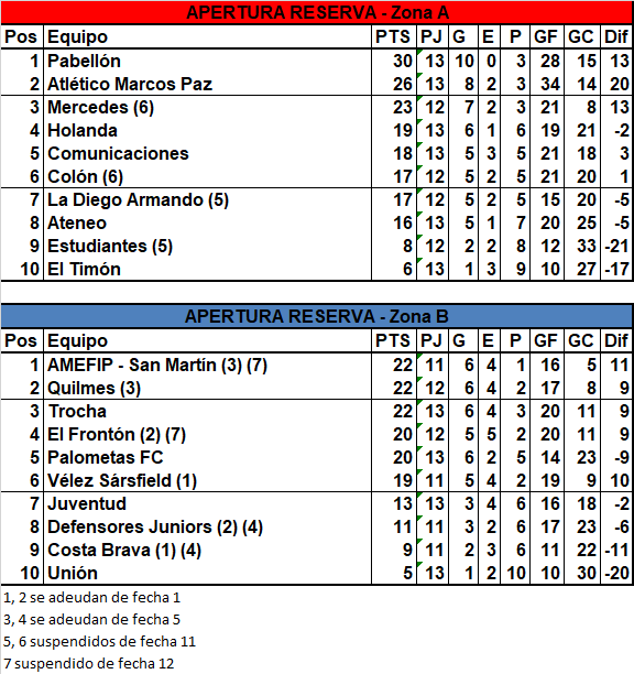 Los encuentros que se jugarán serán los de la fehca 12 entre Comunicaciones y Colón, Vélez Vs. Defensores y Quilmes Trocha, mientras que por el torneo de Reserva, de la fecha 5, se pondrán al día, Quilmes y AMEFIP.
