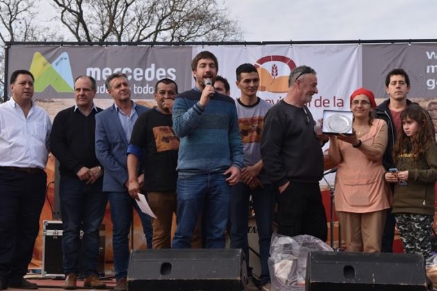 Adrian Manassi, de “La Espiga de Oro”, elaborador de la galleta del año, sostuvo sobre el escenario que “este año entendí más que otros que por la situación dura que vivimos esto más que una fiesta es una fuente de trabajo” comentó y destacó que “nuestro intendente lo está haciendo año tras año, esto quería decir, que no es que en Mercedes vivimos de fiesta, acá hay otra cuestión de fondo, que es la generación de trabajo en momentos difíciles, para todo el mundo, muchas gracias a todos, a mi personal, a mi familia, a los elaboradores de la galleta”, afirmó Manassi antes de recibir el galardón conmemorativo.