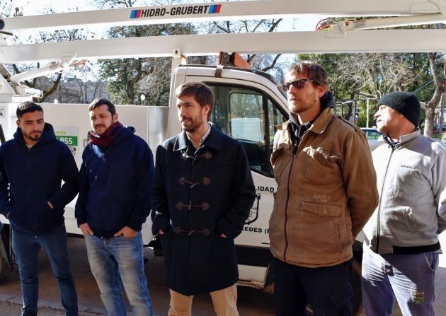 “Cuando hicimos la moratoria decíamos que todo vuelve en concepto de servicios y obras”, dijo el primer mandatario local quien realizo la presentación junto al equipo del servicio eléctrico del Corralón y junto al director del área, Luis Ponce y los trabajadores dependientes de la Sub Secretaría de Servicios a cargo de Silvio Bertera.
