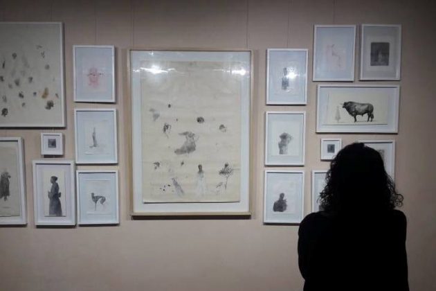 De bajo perfil, Quines brindó una breve exposición sobre la curaduría de la muestra y compartió algunos detalles sobre el proceso formal de producción de sus dibujos, partiendo de bocetos casuales que nacen de la espera que implica el secado de una obra o a partir de lapsos cortos de tiempo donde la labor más compleja se hace difícil.
