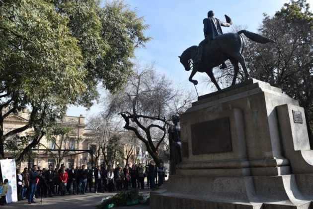 En primer lugar, se entonaron las estrofas del Himno Nacional Argentino. Luego se colocaron las ofrendas florales al pie del monumento del Gral. José de San Martín. Una vez realizados los actos protocolares, el intendente de nuestra ciudad, el Intendente Ustarroz, expresó “yo participo de la idea de que la historia no es solo recordar hechos de memoria, sino es una sumatoria de cuestiones, hechos, procesos, más el diálogo interdisciplinario con la sociología, la economía, la política, la antropología y desde esa visión mucho más abierta tenemos más capacidad de comprensión” y agregó “para entender debemos ser capaces de hacer este ejercicio como sociedad, dialogando con nuestras instituciones y pensando en el bien en común”.