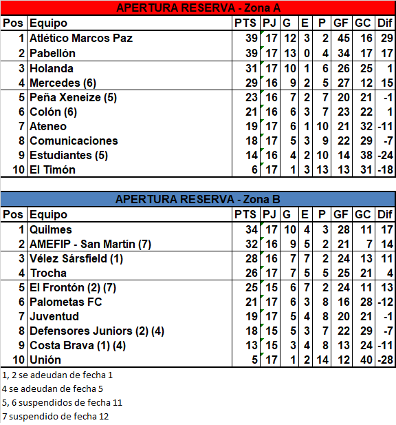 Luego de que se disputara la anteúltima fecha del torneo de Reserva de la Liga Mercedina, se confirmaron más equipos eliminados de la Liguilla que clasificados. En este sentido, en la Zona A, a Pabellón y Atlético Marcos Paz, que ya estaban clasificados directos a semis, se les sumó Holanda y Mercedes. En el caso de Peña Xeneise, podrá alcanzar en puntos al blanquinegro, pero en los resultados entre sí, La Diego Armando pierde.