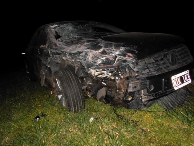 Allí un automóvil Volkswagen Passat CC, color gris oscuro, dominio NIK-143, que circulaba en sentido Suipacha-Chivilcoy , al intentar adelantarse a un camión choca violentamente con una pick up Ford F-100 color rojo, dominio VEH-498 que circulaba en sentido contrario, es decir desde Chivilcoy hacia Suipacha., producto de la violenta colisión entre ambos vehículos, la pick up quedo atravesada sobre la cinta asfáltica en tanto el automóvil finalizo sobre la zona de préstamo de la mano contraria a la que circulaba.