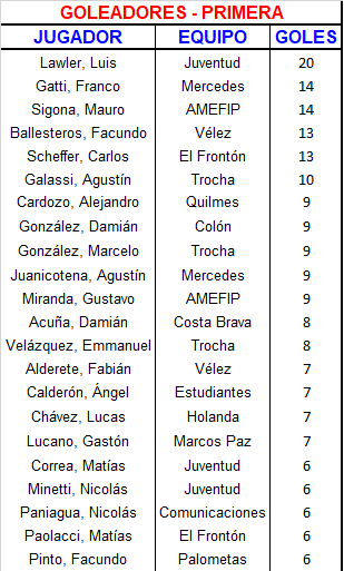 | Comunicaciones | 3 | Jonatan López (2) y Franco Torres |
