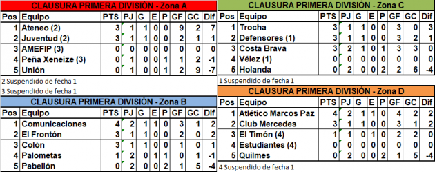 La actividad continúa con la tercera fecha con un partido el sábado, el resto el domingo y Colón Vs. Comunicaciones postergado, mientras que la semana que viene se jugarán algunos partidos postergados de la primera fecha, mientras se reza que la lluvia no complique el fin de semana.