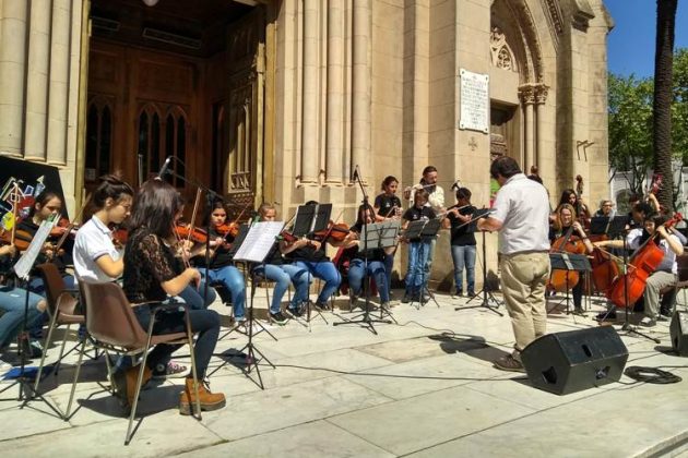 Así comenzaron las actividades en el atrio del que participaron el Jardín de Infantes N° 904, el Jardín de Infantes N| 905, el Jardín Espacios de Amor, la Primaria N° 3, la Escuela San Luis Gonzaga, la Primaria N° 20 de Gowland, la Primaria N° 2, la Escuela Agraria N° 1, la Primaria N° 8, la Secundaria N° 8, el Centro de Formación Integral N° 1, la Primaria N° 13, el Colegio Santa María, y la Orquesta Escuela Mercedes.