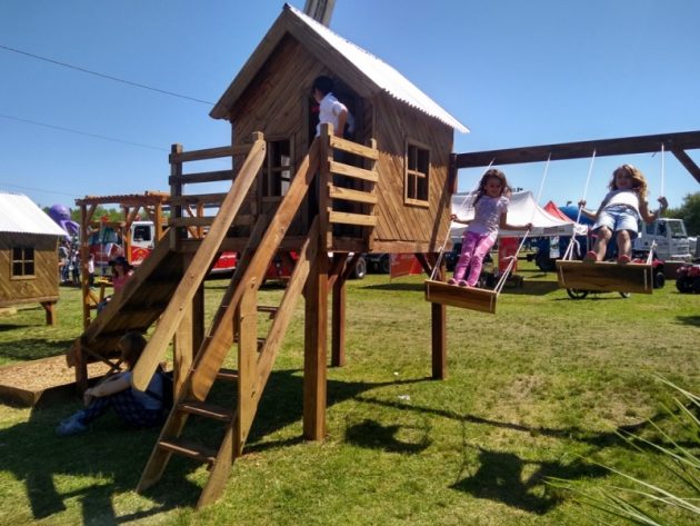 En un amplio espacio, Montero Madera presentó casa de niños, juegos para patio, grandes mesas, barras para casas, mangas para ganado y sumó en esta exposición, grandes piscinas de natación, un producto de reciente incorporación.