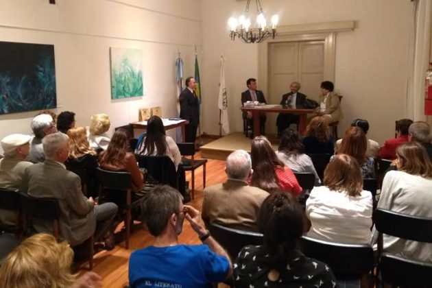 En las primeras horas de la tarde del sábado, escritores, lectores y cineastas se dieron cita en el salón de actos del Colegio de Escribanos en su ingreso por avenida 29. Jorge Citrángolo Casal fue el anfitrión del evento que presidieron el flamante presidente de los notariados, Not. Mariano Castelucci, la titular de SADE Mercedes Aurora Traverso de Lares y el escritor invitado, Roberto Alifano.