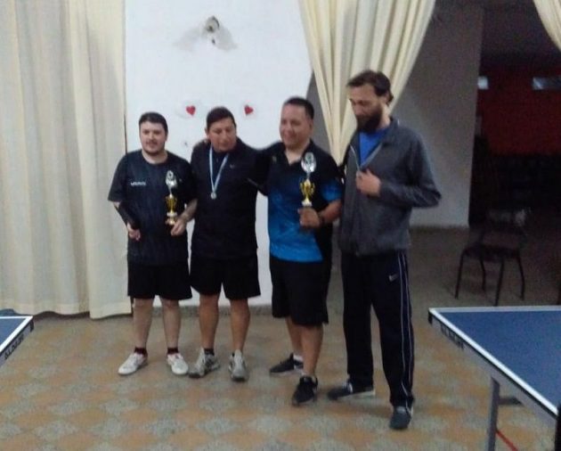 Los mercedinos Alejandro Russo, Carlos Roig, Rubén Insúa y Esteban Delvecchio se presentaron en el 6º torneo TMT en La Reja que coordinan los jugadores Lucas y Rodrigo Bayona, ambos del seleccionado argentino de tenis de mesa.
