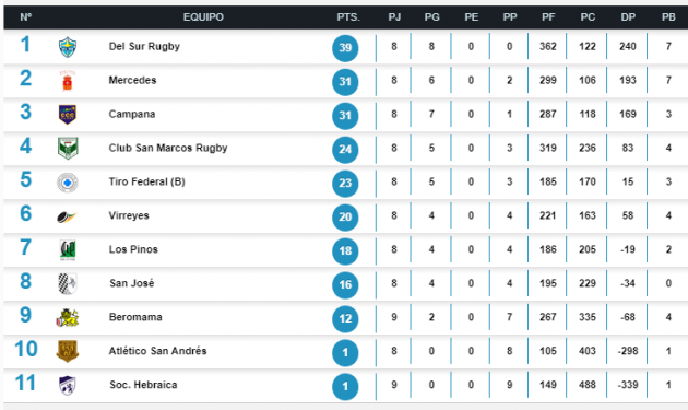 Por último, Tiro Federal de Baradero derrotó a Virreyes con justicia por 31 a 5 y recordamos que quedó libre Los Pinos.