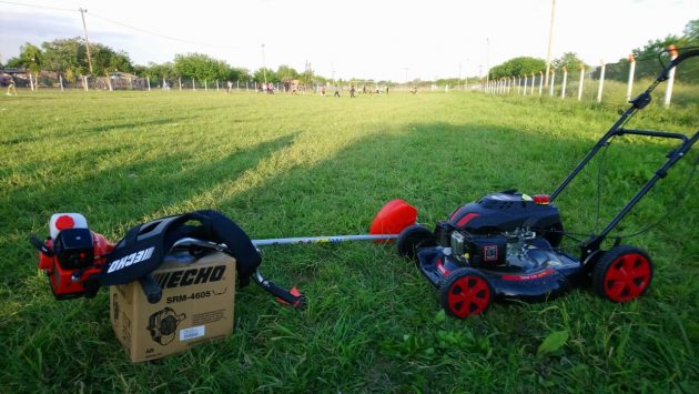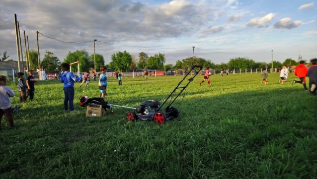 En esta ocasión se le entregó máquina de cortar césped, demalezadora, y bancos de cemento con sus respectivas mesas para mejorar el predio y el bienestar de las familias, continuando con los aportes que se suman, como el alambre perimetral, la iluminación, las mejoras en el predio, además de los vestuarios que son parte del proyecto que se está erigiendo siendo un símbolo para Blandengues, Obrero y Almafuerte.