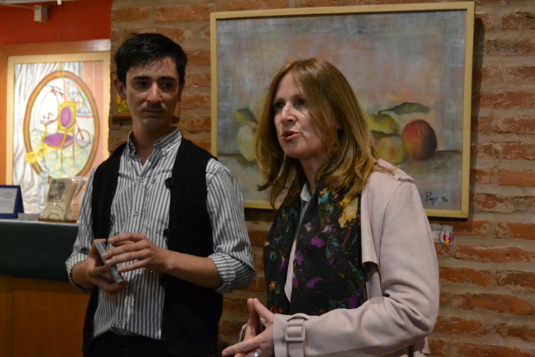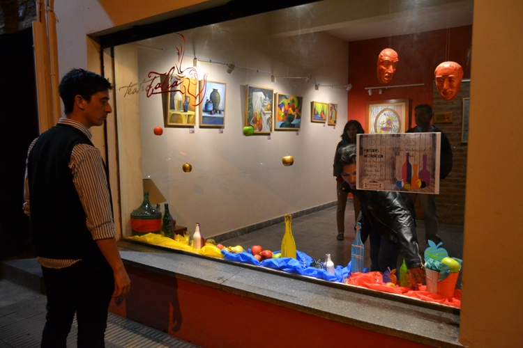 Acompañado por su profesora de taller Marcela Cueto, Pablo Rodríguez inauguró la muestra en la sala de exposición “Fernando Chirieleison” del Teatro Talía. “Pablo es muy joven, pero hace mucho tiempo que está incursionando en el terreno de la plástica. Inició su formación en talleres y luego se decidió hacer de la pintura un trabajo en tiempo completo por lo cual empezó a estudiar en la Escuela de Arte. Es muy activo y participativo en el colectivo de artistas locales con exposiciones individuales y grupales, así como la pintura en vivo”, contó Marcela Cueto.