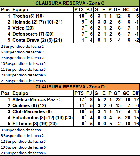 Fecha 9: Mercedes Vs. Estudiantes, Costa Brava Vs. Defensores, Unión Vs. AMEFIP, Ateneo Vs. Peña Xeneize, El Timón Vs. Quilmes, Trocha Vs. Vélez