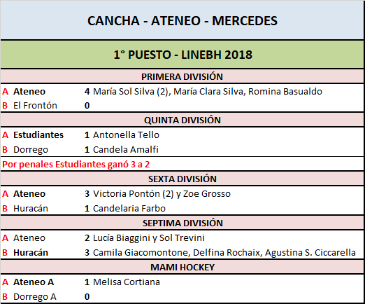 En cancha de Ateneo de la Juventud se jugó en la mañana del sábado la jornada final de la Liga del Noroeste Bonaerense de Hockey donde el local dio la vuelta olímpica en tres de las cuatro categorías donde disputó la final. En Primera División goleó a El Frontón de San Andrés de Giles por 4 a 0 y venció a Huracán en Sexta por 3 a 1 y en Mami a Dorrego A por 1 a 0. Por su parte Estudiantes tuvo que apelar a los penales para vencer a Dorrego, luego de empatar 1 a 1.