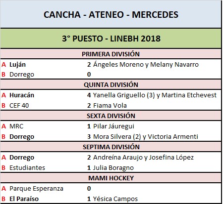En cuanto a la lucha por el tercer puesto, Luján venció a Dorrego en Primera, Huracán al CEF en Quinta, Dorrego al Mercedes Rugby Club, Estudiantes cayó ante Dorrego en Séptima y en Mami El Paraíso de Jáuregui superó a Parque Esperanza de Luján.