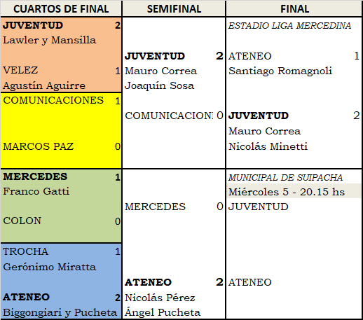 Ahora la historia se muda a Suipacha, donde el miércoles a partir de las 20.15 aparecerá el rival de Club Mercedes en la final anual. Juventud tiene la ventaja y ahora la localía, donde se hace muy fuerte. Ateneo tiene la obligación de ganar en el Municipal. Si lo hace por un gol irán a penales, si lo hace por más, será el ganador del semestre.