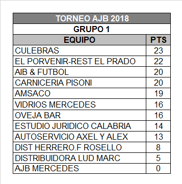 En más partidos, Vidrios Mercedes cerró su participación con goleada seis a dos frente a la AJB Mercedes. En el match, la figura fue Patricio Bonamino con una performance impecable de cuatro goles. Los chicos de Amsaco culminaron quintos en la tabla de posiciones. Con un Hat-Trick de Matías Branko, triunfaron ante Autoservicio Axel y Alex cinco a uno. Para finalizar con la respectiva información, hay que decir que también estuvieron dentro del verde césped, Oveja Bar y Distribuidora Lud Marc. Oveja Bar se quedó con la victoria por dos a cero.