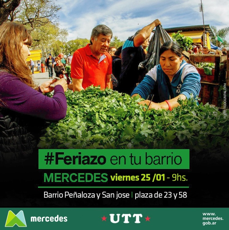 La Secretaría de Desarrollo Social impulsa «Feriazo en tu barrio» comenzando el viernes 25 de enero en la plaza de 23 y 58 que involucra a los barrios San José y Peñaloza. Los vecinos que se acerquen podrán adquirir una bolsa, con una variada cantidad de verduras, a un costo muy bajo. Son productos agroecológicos elaborados por la Unión de Trabajadores de la Tierra. La feria comienza a las 9 de la mañana y se mantendrá abierta hasta finalizar stock.