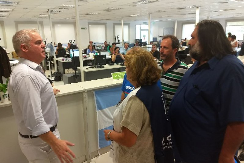 Representantes de los gremios docentes nucleados en el Frente de Unidad Docente Bonaerense se hicieron presentes en el Ministerio de Trabajo de la Provincia, reclamando que, de forma urgente, sean convocados a una reunión Paritaria