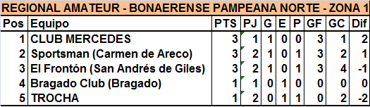 Sportsman 1: Rubio; Velázquez, Salaburu, Lago y Marcos Rocha; Spena, Cosmede, Nicolás Rocha y Peralta; Galeazzi y Palacios. DT: Acuña. Suplentes: Bojanich, Fortina, Casas y Garay.