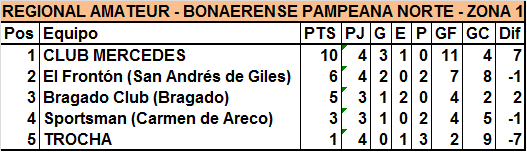 En cancha de la Liga Mercedina Trocha y Club Mercedes jugaron por la quinta fecha de la Zona 1 de la Región Pampeana Norte del torneo Regional Amateur. Los dos llegaron al final de la primera rueda en situaciones totalmente diferentes y brindaron un buen espectáculo en un campo de juego que estaba muy rápido, producto de la lluvia, pero que aguantó bien y ante una buena cantidad de público que soportó la lluvia durante todo el segundo tiempo. Fue 3 a 0 para el Blanquinegro, con goles de Juan Pedro Gatti, Ricardo Barrientos y Luis Lawler.