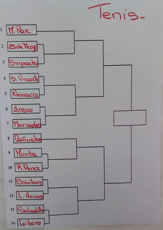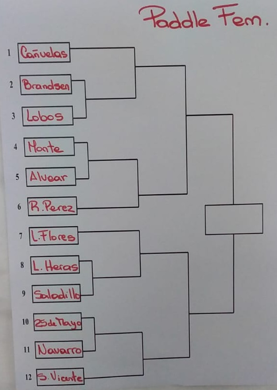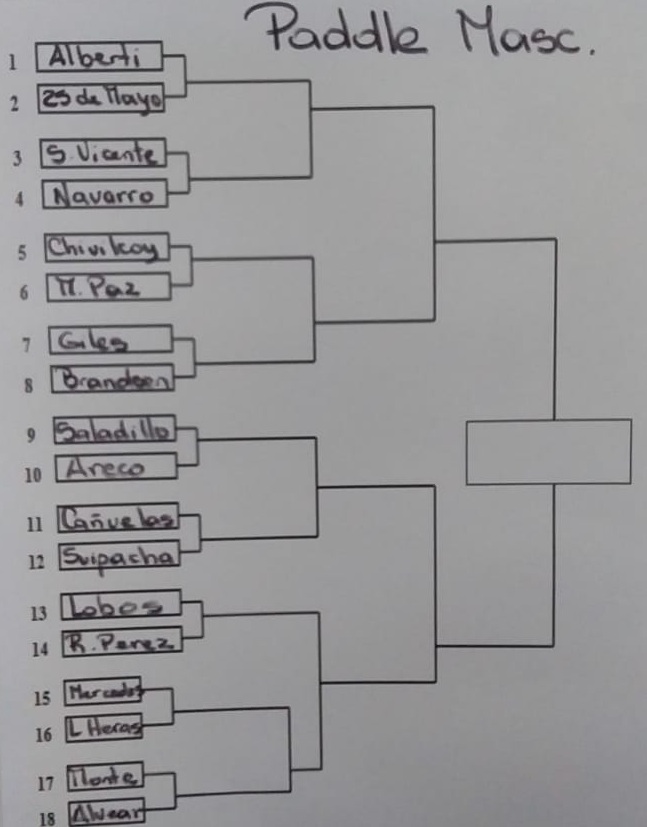 • Paddle Masculino: Mercedes Vs. Las Heras, de ganar, con el vencedor de Monte y Alvear, para luego medirse con el que pase de Lobos y Roque Pérez.