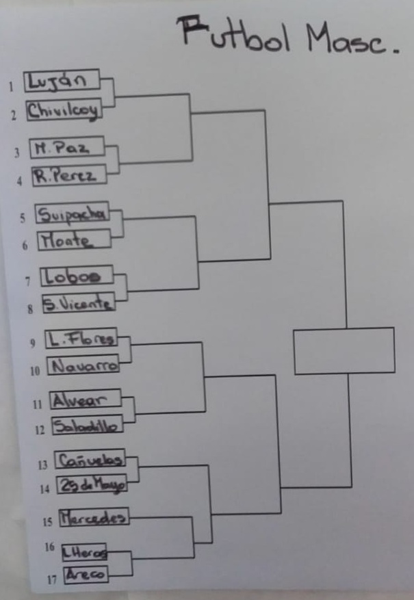 • Fútbol Masculino: Jugará ante el ganador de Las Heras Vs. Areco. De superar la instancia, lo hará ante el vencedor de Cañuelas y 25 de Mayo.