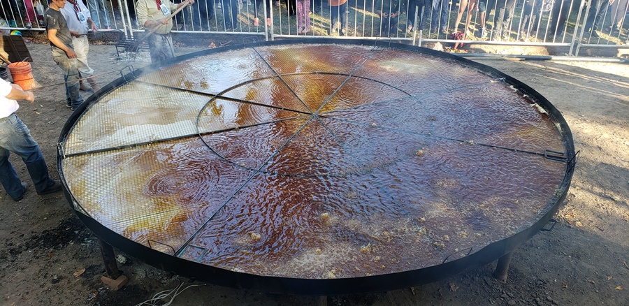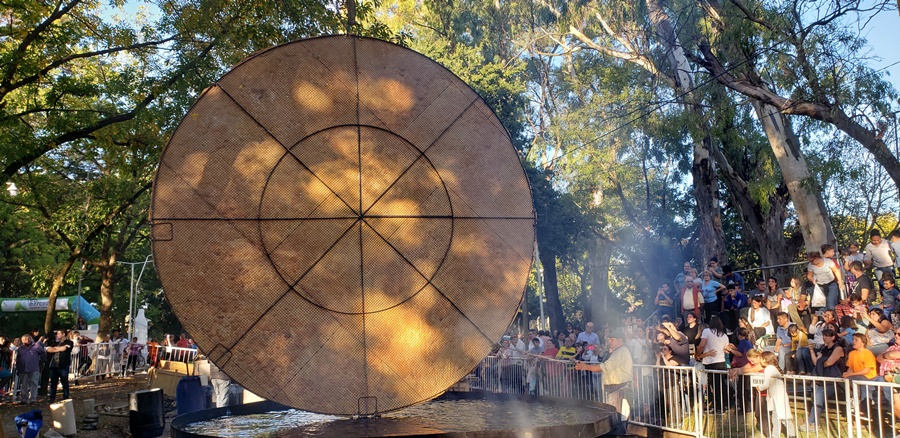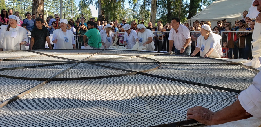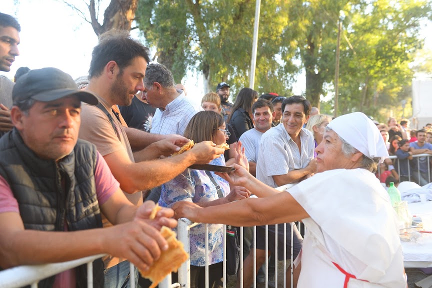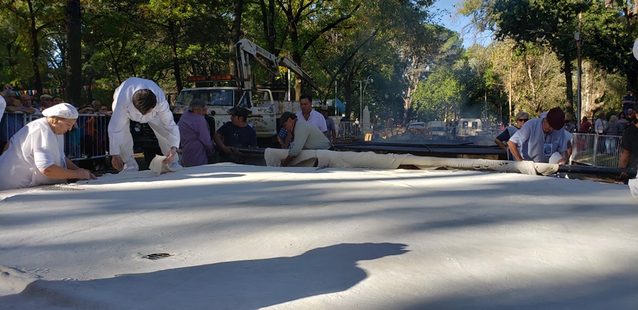 El resultado, es una torta gigante con la cual se dan el gusto de probar bocado cientos de personas, además, con los recortes que quedan, son otras varias docenas de tortas fritas las que se fríen y reparten.