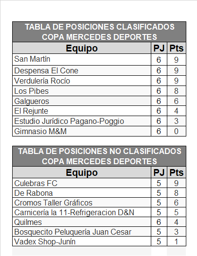 Los clasificados siguen cumpliendo con sus respectivos compromisos. Los Pibes están segundos a un punto de los tres líderes que tiene la liguilla final. El conjunto de Los Pibes despachó tres a cero a Gimnasio M&M casi sin transpirar, imponiendo toda su jerarquía futbolística. En otro match, Despensa El Cone Vapuleó cuatro a cero a Estudio Jurídico Pagano Poggio y cosecha así nueve puntos, siendo uno de los tres punteros que tiene el certamen. Recordemos que el conjunto conducido por Darío Ravassa tuv una impecable performance en la etapa clasificatoria, y hasta el momento se muestra imbatible en su camino hacia la vuelta olímpica.