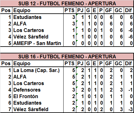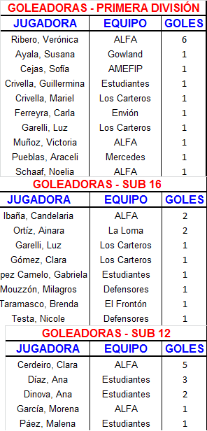 En Sub 16 hay un triple empate, ya que La Loma empató con ALFA y a los dos los alcanzó Los Carteros, que derrotó a Vélez por la mínima.