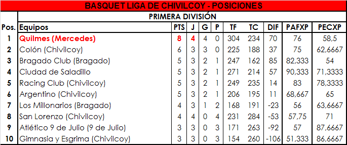 Comenzó a jugarse en la noche del jueves la cuarta fecha del torneo de Primera División de la Asociación de Básquet de Chivilcoy. Quilmes viajó a esa localidad para visitar a San Lorenzo con la férrea misión de defender la punta ante un rival que no es de los más fuertes pero que de local dio más de una sorpresa en los últimos años.