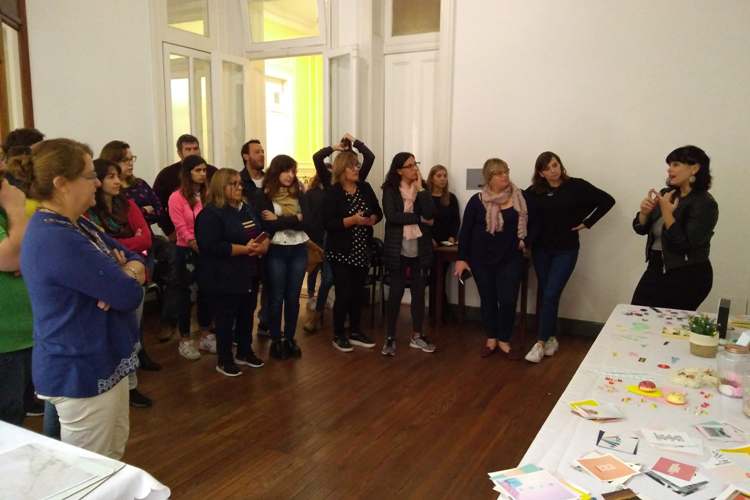 Después, en el salón contiguo, la práctica permitió que los presenten saquen fotos a sus propios productos y jueguen con los filtros y diseños instalados en los celulares para luego publicar las producciones e intercambiar experiencias y contactos para iniciar tareas conjuntas.