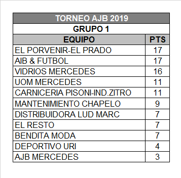 Vidrios Mercedes volvió de su fecha libre, y su goleador Patricio Bonamino sigue infalible al momento de definir. Se adjudicó un hat-trick de goles, en la victoria de su team por cuatro a tres contra Deportivo Uri, que estuvo a nada de aguarle la fiesta a vidrios. Carnicería Pisoni-Ind Zitro comienza a acomodarse en la tabla, a falta de poco para la definición del campeonato, no se rinde. En un trabado y disputado match, superó a la AJB Mercedes por la mínima diferencia, uno a cero.