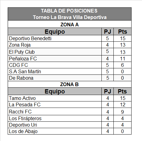 El Puty se metió en la llave de la Copa de Plata, tras triunfar por cinco a tres contra CDG FC. Acumuló 13 puntos y quedó cerquita de meterse en la Copa de Oro. Justamente, Deportivo Benedetti cerró su performance de gran manera. Su víctima en esta ocasión fue el plantel de Zona Roja. La amplia diferencia de seis a dos fue clave para la clasificación. Jonathan Ullua e Iván Calderón, fueron los destacados del vencedor, con dos goles cada uno.