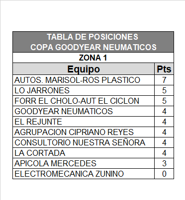 Forrajería El Cholo-Autoservicio El Ciclón vs. Goodyear Neumáticos.