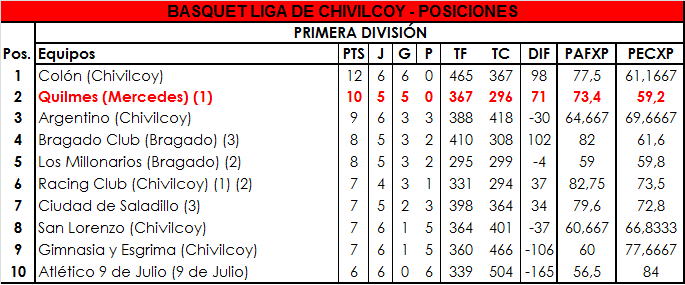 Como parte de la sexta fecha correspondiente al Torneo Apertura 2019 de Primera División, organizado por la Asociación Básquetbol Chivilcoy, el domingo hubo acción en el Estadio «Centro – Jorge Palmieri» de la ciudad de Chivilcoy. Tras un partido parejo y equilibrado, Quilmes de Mercedes consiguió mantener el invicto venciendo como visitante a Gimnasia y Esgrima por 63-62, con un simple de Gabriel Manganiello cuando ya no había más tiempo. De esta manera, el equipo dirigido por el chivilcoyano José Luis Giallorenzo llegó a su quinta victoria consecutiva en cinco presentaciones, por lo que es uno de los animadores principales de la competencia.