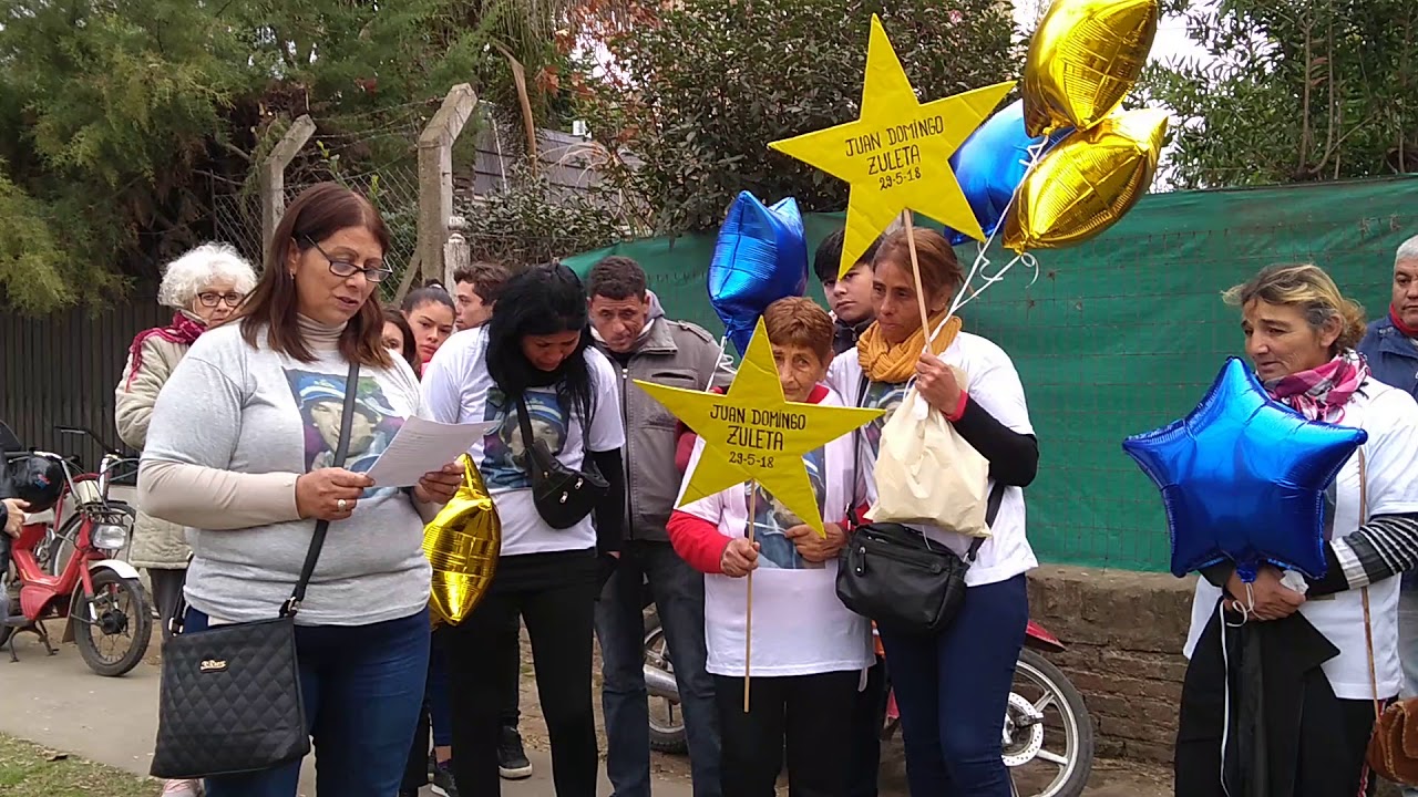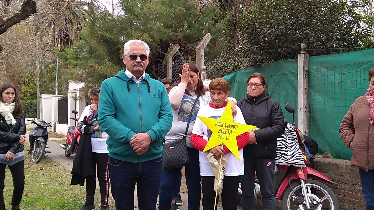 Sobre la Avenida Héroes de Malvinas, entre las calles 54 y 52, se reunieron familiares y amigos de Juan Zuleta, algunos de ellos con una camiseta del Club Holanda diseñada para homenajearlo. Precisamente, Juan volvía de ver a ese Club jugar contra Timón en la cancha de la Liga Mercedina, cuando la moto en la que circulaba fue arrollada por el colectivo que transportaba a la hinchada.