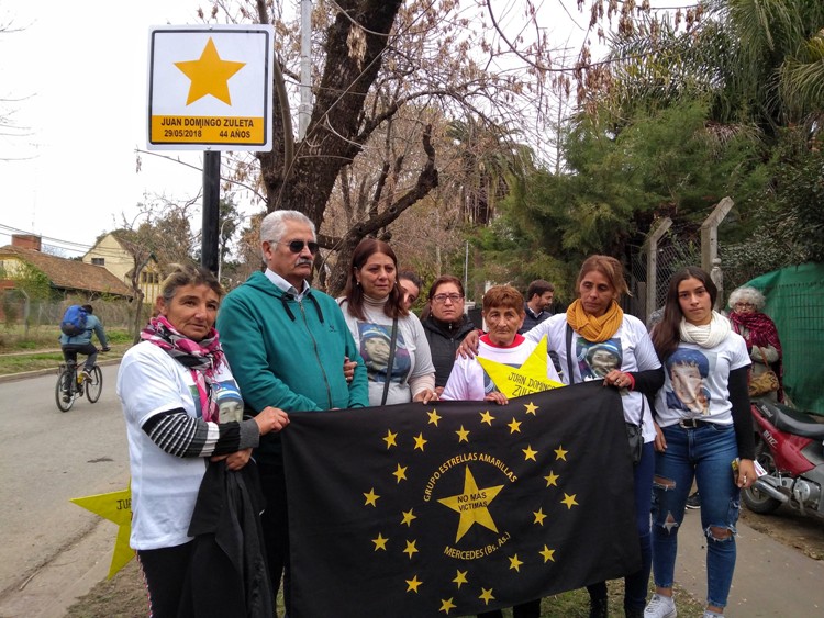 Sobre la Avenida Héroes de Malvinas, entre las calles 54 y 52, se reunieron familiares y amigos de Juan Zuleta, algunos de ellos con una camiseta del Club Holanda diseñada para homenajearlo. Precisamente, Juan volvía de ver a ese Club jugar contra Timón en la cancha de la Liga Mercedina, cuando la moto en la que circulaba fue arrollada por el colectivo que transportaba a la hinchada.